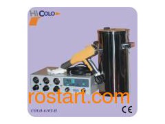 PORTABLE POWDER COATING EQUIPMEN(COLO-610T) Guaranteed 100 KV at Gun Tip for the entire life of the gun. Light weight one piece, moulded 100 KV gun. Entire range of nozzles to select from for highest transfer efficiency. Ideally suited for small powder trial and small production requirement. Can be upgraded to full scale production Pulse type, 15-20 clock/second. Good for different shapes workpiece.