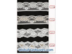 Stretch Lace in nylon with spandex. Available in many style and sizes. Few Styles are with lurex also.
