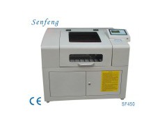SF450 Laser engraving machine: Specifications: Working area: 400*500mm Laser power: 40W Engraving speed: 1-60000mm/min Cutting speed: 1-10000mm/min Cutting thickness: 0-20 Plexiglas (others determined by materials) Minimum shaping character: Chinese character 2*2mm letter 1*1mm Graphic Format: DST, PLT, BMP, DXF Resolution ratio: <0.01mm Power supply: AC220V/50Hz Location precision: < 0.01mm Operating temperature: 5-40 centigrade degrees Operating humidity: 5%-95% (Free of condensed water) Grass Power: <1000W Information: SF450 laser engraving machine is used specially for the nonmetal art crafts, gifts and the engraving of bamboo products. The mechanical structure is this machine is compact and reasonable. The electrical ability is stable, the engraving speed is high, and the precision is high. SF450 laser engraving machine can engrave beautiful pictures, peoples' photos on the surface of many materials of different size of materials. It can also engrave many signs, marks. It is a machine with good performance and economic price. Characteristic: Japanese technical engine running, making sure the products to run at high aped and high precision. The original binding beeline lead rail, the mechanic is running well and stable. Channel feeding, the feeding can be unlimited. The body of the machine adopts high quality aluminum, professional model and has the specification of strong and not easy for distortion. The main parts of the electrical line adopts the imported materials, the mainly controlled CMOS chip adopts double face CPU. Add to Basket