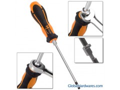 1.Use spanner or wrench on hexagonal base of blade for stubborn screws or for extra leverage.2. One-piece forged round blade with hex shoulder.3. Non-slippery ergonomic designed handle.