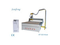 SF1325 Wood working machine: Specification: Table size: 1350mm× 2550mm Working area: 1300× 2500mm Resolution ration: 0.025mm Power of the main axis: 4.5KW (Options: Italy HSD) Working voltage: AC380V/50Hz Running speed: 60m/min Main axis speed: 24000revolution/min Feeding height: 200mm The diameter of the knife: Φ6, Φ12.7 The engraving instruction: HPGLG code Knife pressure: 0.7Kpa Cleaning power: 2.2KW Absorption power: 5KW Gross power: 20KW Applicable areas: Wood working: Solid wave board process, door of cabinetwooden doorartistic wooden door no-paint door, avoid windprocess of the artistic window, shoes cleaning machine, the cabinet of the playing machine and the board, mahjong table, computer table and the assistant process of the household effects Advertising: Advertising boardLabel designAcrylic cuttingmodelexecution of the multi material decoration products. Model industry: It can engrave on the steal materials such as copper, aluminum, iron etc and non-mental materials such as man-made marble, sand, plastic board PVC materials, wood board etc. Other field: It can engrave many image, embossment, It is widely used in artistic industry. Add to Basket