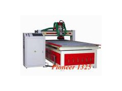 Pioneer Wood Working Machine CNC Router Pioneer1325 Specification: XY axis journey : 1300*2500mm or Customized Size as request. Z axis journey: 150-200mm Table size: 1480*3000mm Highest speed: >30m/min Processor: DSP 100MHz Interface: USB Engraving code: G code *.u00*.mmg*.plt The environment of the software: DSP Machine power (without main axis): 3000W Working voltage: AC 380V/50Hz Main axis power: 8KW (Italy air cooled) Working speed of the main axis: 0-24000rpm/min Working method: Servostepper 1. All the spare parts of the machine adopt the international advanced parts. Special automatic knife changing data control function, the position of the knife head can be adjusted automatically, automatic knife adjust system. 2. Use Germany original vacuum absorption and no oil vacuum pump, adopt the Italy exported air cooled big power electrical main axis, the driving system adopts Japanese servo engine with high control precision. 3. Capacity protect working table: avoid destroy the table because false operation or the false software. Capacity process over area protection: avoid the mechanic collide because of the design area goes over the working area. Advanced DSP control handle, control the automatic multi-faced 3D process. It can process the 3-dimentional process, engrave or cut, able to work offline. 4The structure is steel jointing, stable and without distortion. Fixed working table and can process the materials on the table freely. 5Adopts the imported strait line square contrail, double line and 4list block, high bearing strength, stable running, high precision, high intention and high quality steel contrail, guarantee the mechanic precision and the abrasive resistance. The life time is 10times the machines with the round contrail. The knife is also with high precision. 6The compatibility of the software is good, it can compatible the CAD/CAM design software such as type3/Artcam/Castmate and Wentai. 7. It is suitable for the manufacture of many materials. suitable fields: Wooden industry: the process of the wave board, cabinet door, wooden door, artistic door, no-painting door, screen, process of the artistic window, shoes cleaning machine, cabinet of the play machine, mahjong table, computer board and furnishing. Advertising industry: Advertising board, the design of the signs, the cutting of the acrylic, plastic absorb, the design of the multi-material decoration product. Model industry: Can engrave on the steel model such as copper, aluminum, iron etc, Nonmetal materials such as man-made marble, sand, plastic board, PVC tube, wood board Other fields: Can engrave many big embossments, widely used in the artistic field.