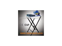 FFeatures: Equipped with induction motor, powerful, quiet and high speed, direct drive blade for effortless cutting. Wet cutting system cuts down on dust. Quick change blade design. Chrome-plated steel guide rail easily adjusts for precise alignment. Cutting table rolls smoothly on large, non-ruts nylon roller wheels. Cutting table flips up for easy cleaning of water tray. Durable fiberglass impregnated plastic water tray will not rust. Automatic overload switch protects motor from overheating. Water pump, 90 degree and 45 degree rip guide included. Optional folding stand for easy transporting Specification Motor 120V/60Hz/1pH, 3450RPM Power input 1HP Blade Speed 3450RPM Blade Capacity 7"(180mm) Arbor Size 5/8"(16mm) or 7/8"(22.2mm) Length of Cut(Rip) 16"405mm) Table size 280x350 mm Length of Cut(Diagonally) 12" (305mm) Depth of Cut 25mm