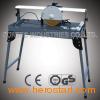 Features: Continuous rim diamond cutting wheel for excellent performance Large steel work table with rubber surface 650*380mm Sturdy aluminum stop Infinitely adjustable miter stop for diagonal cuts Motor holder tilts 0-45 for jolly cuts Motor guide with 4-fold ball bearing IP54 protection degree Larger water trough with cooling water pump Folding stand for stable operation Specification Motor: 230V~/50Hz Power input: 800W S2: 10min Blade Speed: 3000RPM Blade Capacity: 8"(200mm) Arbor Size: 1"(25.4mm) Rip cut: 620mm Table size: 650x380mm Diagonal cut: 435mm Depth of Cut: 30mm@90 degree 25mm@45 degree