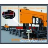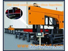 I.CNC Band Sawing Machine Model DJ1250A. ApplicationIt was mainly used for cutting H Beam, Slot steel, Box beam and bar steel with characteristics of easy operation, high efficiency and strong power etc.B. Characteristicsa)The machine is mainly composed of saw-frame, bed(worktable), vertical feeding mechanism, upright press mechanism, rotation worktable, hydraulic system and cooling system etc.b)Saw frame is welded by square tube and steel plate with aging treatment to ensure strengthen and precision.c)Saw frame feeding is controlled by hydraulic servo proportional valve and encoder realize digital control.d)Blade saw keep good tensile in rapid moving condition by hydraulic tensile control.e)Power brush was equipped on blade saw to clean chips, which can adhere to blade occasionally, automatically.f)Spiral chips-removal system is equipped on machine to collect chips.C. Technical Specification of DJ1250Sawing capacity (without rotation) (web height × flange width)Max.1250 mm×600 mmMin.200 mm×75 mmSaw Blade SizeT: 1.6mm W: 67mmMotor PowerMain Motor15 kWHydraulic Pump5.5kWSaw blade linear speed20 ~ 100 m/minSawing feeding speed0-2m/min Controlled by ProgramRotation angle0 -45Worktable heightAbout 800 mmMain clamping hydraulic motor100ml/rFront clamping hydraulic motor100ml/rOverall DimensionApprox. 2200×4400×2800 mmMachine Weight (Ton)Approx. 10t