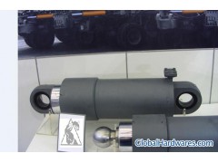 Hydraulic cylinders get their power from pressurized hydraulic fluid, which is typically oil. The hydraulic cylinder consists of a cylinder barrel, in which a piston connected to a piston rod moves back and forth. The barrel is closed on each end by the cylinder bottom (also called the cap end) and by the cylinder head where the piston rod comes out of the cylinder. The piston has sliding rings and seals. The piston divides the inside of the cylinder in two chambers, the bottom chamber (cap end) and the piston rod side chamber (rod end) . The hydraulic pressure acts on the piston to do linear work and motion. Flanges, trunnions, and/or clevisses are mounted to the cylinder body. The piston rod also has mounting attachments to connect the cylinder to the object or machine component that it is pushing. A hydraulic cylinder is the actuator or "motor" side of this system. The "generator" side of the hydraulic system is the hydraulic pump which brings in a fixed or regulated flow of oil to the bottom side of the hydraulic cylinder, to move the piston rod upwards. The piston pushes the oil in the other chamber back to the reservoir. If we assume that the oil pressure in the piston rod chamber is approximately zero, the force on the piston rod equals the pressure in the cylinder times the piston area (F=PA) . The piston moves instead downwards if oil is pumped into the piston rod side chamber and the oil from the piston area flows back to the reservoir without pressure. The pressure in the piston rod area chamber is (Pull Force) / (piston area - piston rod area)
