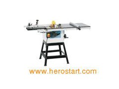 This superb table saw is designed for anybody demanding professional quality in a compact saw. The main table and the sliding table are precision machined cast iron. The addittion of a large extension table allows rip cuts of up to 28"wide. The outstanding feature of this machine however is the bearing guided sliding table with a sturdy fence which can be locked anywhere between 90 and 30 degrees. There is a flip over length stop for production work and a screw clamp for holding timber securely. The carriage stroke allows crosscutting up to 24"ideal for cabinetmakers. Blade height and blade angle are both easily adjusted using two separate handwheels. A beautifully quiet induction motor with belt drive to the TCT sawblade complete the package. Supplied with side extension table, floorstand, mitre fence adjustable 45 degrees each way, dust extraxtion outlet 50mm diameter outlet, 20 tooth TCTblade, cable and plug. Add to Basket