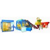 QTY9-18 Type Hydraulic Full-automatic Block Making Machine Line: Equipment Superiority: * Omnibearing vibration of table and mold improves the density of bricks. In order to get even transmission of vibration force, two-way mode is adopted in the lower vibration with two vibration tanks linked to each other by two hydraulic motors. * The material feeder with a spiral reticulation structure distributes materials evenly, which shortens the operation time and then the mold cycling time. * Due to its multi-function and advanced technology, it can be applied to produce various types of concrete blocks, standard bricks, perforated bricks and paving bricks. These products are of good quality, high compression strength and accurate dimension. Besides, more kinds can be produced such as color paving bricks, color grassland bricks and curb bricks if the secondary distributing device is added to the line. * The main frame is wide for the convenience of mold filling, so more blocks can be made. In order to get even pressure, three oil reservoirs are used, which raise the pressure to as high as 100t. Moreover, the smallest reservoir in the middle increases the operating speed of the left and right ones respectively, thus improving the productivity. * It is applicable to sand, stone chips, slag, coal dust, fly coal ash, furnace slag and construction waste, etc. * This machine with an integration of mechanism, electronics and hydraulics is automatically controlled by the PLC computer, which supervises every phase through the whole course. Once fault is detected, the machine can lock itself. Meanwhile, output statistics is made by the computer. Thus, it holds a leading position for its outstanding performance in terms of environmental protection.