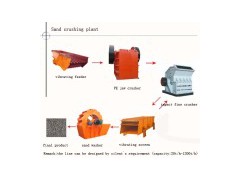 1. Production line process: First of all, is sent to the fine jaw crusher to be crush again by the belt conveyor. The crushed material is sent by the vibrating screen to be separated. The material whose size is suitable for the feed size of the sand making machine can be sent to the sanding making machine. The unsuitable materials should be sent back to the secondary jaw crusher to be crushed again. The crushing material from the sand making machine is sent back to the vibrating screen to be separated. The suitable separated sand which is the final product should be sent to the sand washing machine to be cleaned. The unsuitable separated sand should be sent back to the sand making machine to be crushed again, to meet the requirements of a variety of sand material. 2. The performance of the production line: This production line is highly automated, low-cost, high crushing ratio, energy saving, Large output, less pollution, easy maintenance, The final sand in accordance with national standards, uniform size, good shape, with the reasonable level. Remarks: 1, Design and manufacture products according to clients` special requirement. 2, Assist clients to prepare for the first construction scheme. 3, Install and debug the equipment. 4, Provide all time perfect service. 5, Make sure the model by yourself or tell me your capacity, material, feeding size, opening size, application and so on.