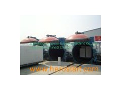 Automatic AAC Brick Machine Plant/light weight brick machine Autoclaved Aerated Concrete Line(AAC), for this highly sophisticated manufacturing process, Shandong Dongyue Building Machine Co., Ltd has all the components and technology available. The manufacture of aerated concrete places great demands on the dosing of raw materials, the supervision of the fermentation process and the control of the following production steps. Many years of experience and the deployment of the latest automatic control algorithms in our control components guarantee the quality of the finished products. The basis for continuous high quality Aerated concrete is produced from quartz sand, lime, cement, gypsum (anhydrous), and water. The process starts with quartz sand being milled in a wet ball mill into a fine sand slurry which is then stored in slurry silos with an integrated stirrer. It is important to keep the defined density, which is controlled either manually or automatically. Sand slurry, recycled slurry, lime, cement, gypsum, aluminum and water are added to the mixer according to the desired product recipe. Immediately after the mixing the pre-positioned moulds are filled and subsequently transported to the fermentation area. Here the mixture starts reacting by producing fine pores, allowing the mass to harden into an aerated concrete cake. Consistent precision The fermentation process produces hydrogen, resulting in the creation of billions of tiny pores in the concrete cake. At the end of the process the cake is left with an enormous number of air cells. Simultaneously the aerated concrete cake starts to harden. As soon as the material has enough resistance to be cut, the aerated concrete cakes are demoulded and placed onto the cutting line. Here they are frst calibrated, profiled, and cut both horizontally and vertically.