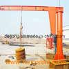 This kind of crane is developed in recent years, small and medium-size lifting equipment, safe, reliable, high efficiency, energy-saving, time-saving and labor-saving and flexible feather, in the three-dimensional space and can operate freely, especially in the short, intensive lifting showing the occasion better than any other conventional lifting equipment unique advantages, widely used in workshops, warehouses, terminals and other fixed location. Features: This machine suitable to work in the dock, warehouse, workshop etc fixed working conditions, it can work within the 360 degrees to lift, move and materials handling. This type machine is composed by the vertical shaft, revolving arm, rotating shaft, hoist etc, the bottom of the vertical shaft is fixed on the concreate base. Horizontally rotation of the revolving arm: Manual, depend on the operator use the human force to push the impending working or self prepared rope etc device, the hoist travel with the right and left straight line on the H beam, use the hoist to lift the heavy materials. This type machine with advantages of the simple structure, operate convenience, turning agile, wide working conditions.