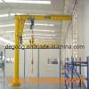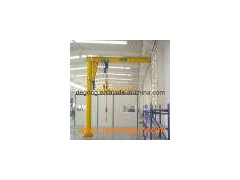 This kind of crane is developed in recent years, small and medium-size lifting equipment, safe, reliable, high efficiency, energy-saving, time-saving and labor-saving and flexible feather, in the three-dimensional space and can operate freely, especially in the short, intensive lifting showing the occasion better than any other conventional lifting equipment unique advantages, widely used in workshops, warehouses, terminals and other fixed location. Features: This machine suitable to work in the dock, warehouse, workshop etc fixed working conditions, it can work within the 360 degrees to lift, move and materials handling. This type machine is composed by the vertical shaft, revolving arm, rotating shaft, hoist etc, the bottom of the vertical shaft is fixed on the concreate base. Horizontally rotation of the revolving arm: Manual, depend on the operator use the human force to push the impending working or self prepared rope etc device, the hoist travel with the right and left straight line on the H beam, use the hoist to lift the heavy materials. This type machine with advantages of the simple structure, operate convenience, turning agile, wide working conditions.