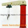 This kind of crane is developed in recent years, small and medium-size lifting equipment, safe, reliable, high efficiency, energy-saving, time-saving and labor-saving and flexible feather, in the three-dimensional space and can operate freely, especially in the short, intensive lifting showing the occasion better than any other conventional lifting equipment unique advantages, widely used in workshops, warehouses, terminals and other fixed location. Features: This machine suitable to work in the dock, warehouse, workshop etc fixed working conditions, it can work within the 360 degrees to lift, move and materials handling. This type machine is composed by the vertical shaft, revolving arm, rotating shaft, hoist etc, the bottom of the vertical shaft is fixed on the concreate base. Horizontally rotation of the revolving arm: Manual, depend on the operator use the human force to push the impending working or self prepared rope etc device, the hoist travel with the right and left straight line on the H beam, use the hoist to lift the heavy materials. This type machine with advantages of the simple structure, operate convenience, turning agile, wide working conditions.
