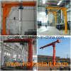 This kind of crane is developed in recent years, small and medium-size lifting equipment, safe, reliable, high efficiency, energy-saving, time-saving and labor-saving and flexible feather, in the three-dimensional space and can operate freely, especially in the short, intensive lifting showing the occasion better than any other conventional lifting equipment unique advantages, widely used in workshops, warehouses, terminals and other fixed location. Features: This machine suitable to work in the dock, warehouse, workshop etc fixed working conditions, it can work within the 360 degrees to lift, move and materials handling. This type machine is composed by the vertical shaft, revolving arm, rotating shaft, hoist etc, the bottom of the vertical shaft is fixed on the concreate base. Horizontally rotation of the revolving arm: Manual, depend on the operator use the human force to push the impending working or self prepared rope etc device, the hoist travel with the right and left straight line on the H beam, use the hoist to lift the heavy materials. This type machine with advantages of the simple structure, operate convenience, turning agile, wide working conditions.