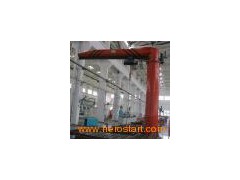 This kind of crane is developed in recent years, small and medium-size lifting equipment, safe, reliable, high efficiency, energy-saving, time-saving and labor-saving and flexible feather, in the three-dimensional space and can operate freely, especially in the short, intensive lifting showing the occasion better than any other conventional lifting equipment unique advantages, widely used in workshops, warehouses, terminals and other fixed location. Features: This machine suitable to work in the dock, warehouse, workshop etc fixed working conditions, it can work within the 360 degrees to lift, move and materials handling. This type machine is composed by the vertical shaft, revolving arm, rotating shaft, hoist etc, the bottom of the vertical shaft is fixed on the concreate base. Horizontally rotation of the revolving arm: Manual, depend on the operator use the human force to push the impending working or self prepared rope etc device, the hoist travel with the right and left straight line on the H beam, use the hoist to lift the heavy materials. This type machine with advantages of the simple structure, operate convenience, turning agile, wide working conditions.
