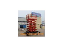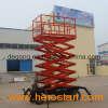Scissors aerial working platform Scissor-type aerial working platform is widely used to workshop building site, hotel, airport, station, dock, palaestra and so on. Mainly used to installing, repairing and cleaning high aerial equipment, power equipments, overhead pipeline and so on. It is an ideal equipment for guaranteeing working safe, improving working efficiency and making aerial working more convenient and quick. Configuration 1. Electrical systerm: National 2. Hydraulic systerm: National or inporting form Italy. 3. Scissor part is made of high-strength manganese steel. 4. Color: Chassis and Scissors are blue, Work platform and Guardrail are orange. Features 1. Owning point control system. Controling platform up and down in two-way. 2. Manual moving, two universal wheel. Make moving convenience. 3. After short blasting, Painting both bottom and surface 4. Guard rails of working platform is removable. Sacurity 1. Control voltage is DC24V. Keeping working person safe. 2. Electrical control box is water-proof design. 3. Installing Emergency button, Can keeping working person safe. 4. Self-locking funtion will work when electricity is suddenly cut off. 5. Systerm have Emergency drop valve, which can let platform down safely. When electricity is suddenly cut off. 6. Four telescopic supporting legs in buttom. Which can keep machine stable.