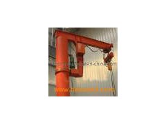 This kind of crane is developed in recent years, small and medium-size lifting equipment, safe, reliable, high efficiency, energy-saving, time-saving and labor-saving and flexible feather, in the three-dimensional space and can operate freely, especially in the short, intensive lifting showing the occasion better than any other conventional lifting equipment unique advantages, widely used in workshops, warehouses, terminals and other fixed location. Features: This machine suitable to work in the dock, warehouse, workshop etc fixed working conditions, it can work within the 360 degrees to lift, move and materials handling. This type machine is composed by the vertical shaft, revolving arm, rotating shaft, hoist etc, the bottom of the vertical shaft is fixed on the concreate base. Horizontally rotation of the revolving arm: Manual, depend on the operator use the human force to push the impending working or self prepared rope etc device, the hoist travel with the right and left straight line on the H beam, use the hoist to lift the heavy materials. This type machine with advantages of the simple structure, operate convenience, turning agile, wide working conditions.
