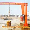 This kind of crane is developed in recent years, small and medium-size lifting equipment, safe, reliable, high efficiency, energy-saving, time-saving and labor-saving and flexible feather, in the three-dimensional space and can operate freely, especially in the short, intensive lifting showing the occasion better than any other conventional lifting equipment unique advantages, widely used in workshops, warehouses, terminals and other fixed location. Features: This machine suitable to work in the dock, warehouse, workshop etc fixed working conditions, it can work within the 360 degrees to lift, move and materials handling. This type machine is composed by the vertical shaft, revolving arm, rotating shaft, hoist etc, the bottom of the vertical shaft is fixed on the concreate base. Horizontally rotation of the revolving arm: Manual, depend on the operator use the human force to push the impending working or self prepared rope etc device, the hoist travel with the right and left straight line on the H beam, use the hoist to lift the heavy materials. This type machine with advantages of the simple structure, operate convenience, turning agile, wide working conditions.