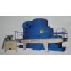 VSI Sand Making Machine VSI Sand Making Machine is a newly researched equipment, with international advanced level. Technology and modern processing equipment make it a leading role in this industry. VSI Sand Making Machine is widely used for artificial sand, in metal and non-metal ores, cement, refractory material, bauxite, silicon carbide, glass material, building material. Features: 1. Advanced double-pump oil lubrication system guarantee shaft bearing lower temperature increase, longer life time, more reliable operation. 2. Main shaft is equipped with imported precision rolling bearing. It makes main shaft work stable, lengthen maintenance cycle, increases productivity. 3. Hydraulic lifting mechanism of upper cover can move away the cover easily, which saves man power during maintenance. 4. Over-vibration device is equipped. There will be alarm when vibration surpasses a stipulated figure. It will stop the machine, in order to protect it. 5. Special dust-proof design for main shaft bearing fully avoid dust entering bearing lubrication part, which make sure the machine work normally. 6. Special feed opening structure makes it possible that center feeding and ring feeding comes together, in order to meet requirement of different stones. In addition, this equipment can not only crush stone, but also iron. 7. Shape of material-through device is better designed, which improve the utilization ratio. Working Principle: 1. Center Feeding: Raw material falls down into feed hopper, then enters impellor through central entrance hole. It is accelerated in high-speed impellor, then is thrown out at speed of 60-75m/s. When hitting impact plate, it is crushed. Final products come downwards though outlet. 2. Ring Feeding: Raw material falls down into feed hopper, then through ring, it is devided into two parts by material-dividing plate. One enters into impellor through the center of material-dividing plate. The other falls down from outside of material-dividing plate. Material, which is thrown out by impellor at speed of 60-75m/s, hits material coming down from outside of material-dividing plate. In this way, material is crushed.