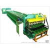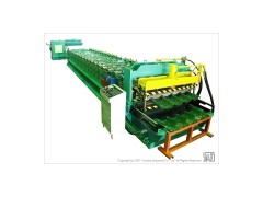 Color glazed steel tile roll forming machine, color steel tile rollformer, step roof tile roll forming machine, for steel tiles This machine is comprised of mechanical decoiler, guiding device, roll forming unit, hydraulic pressing device, post-mould cutting device, hydraulic station, PLC control system and unloading rack. We can design the machine according to required profiles.