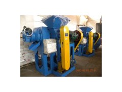 The machine is used to further crush rubber lumps into small granules. Armed with hard alloy cutting units, the machine adopts water cooling system to insure the output quality, Technical data: Diameter of roller 280 Rotate speed 30r/min Size of input granules ≤ 50*80mm Size of output granules ≤ 3-10mm Capacity 200-600kg/h Main motor power 45kw Feeding motor power 2.2kw Tempeture of cooling water ≤ 60 Dimension(L*W*H) 2.4*2*1.6m Weight 4.2T