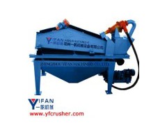 The SS series sand collecting system---- Crushing machine/mining machine is designed on the base of absorbing the foreign advanced technology, together with our real condition and come up to the advanced world standard. They are utilized widely in the sandstone aggregate processing system of water and electricity station, the processing system of original glass material, the production line of manufactured sand, recovery of the coarse slime of the coal cleaning factory, and the protection environment project(the mud cleaning etc. ) and so on, they can solve the fine sand recovery questions. (2) Work Principle 1. The system is composed of the motor, pump, cyclone, vibrating screen, pool, recycling box 2. Working principle: The compound of sand and water is transported to cyclone, the sand that centrifugal classification concentrate provided to the vibrating screen by the heavy grit, sand and water are effectively separate after vibrating screen dehydration. Through Recycling Box, fine sand and mud and so on returned again to the pool, then are exhausted from the exit when the liquid surface of pool is too high. The material weight concentration recovered by the vibrating screen is 70%- 85%. Adjusting fineness module may come true by changing pulp concentration, adjusting the flooding water yield, changing the grit mouth, then fulfilling its three kinds function ----- washing, dehydration and screening. (3)Features and Benefits: 1. Effectively reduce the fine sand losing quantity, and make it in the scope of 5-10%. 2. The vibrating screen utilizes polyurethane screen cloth, which has longer life compared with others and uneasy to be blocked. 3. Inner the polyurethane, strengthen the whole device service life, it can smoothly finished the Work of condensing slime and clearing the liquid etc 4. The maximum fine grain materials quantity recovered from the total effluent is 85%, so it has Unsurpassed technology and economic advantage compared with other equipments. 5. The find sand are recovered sufficiently, you can reduce the sedimentation basin workload and Low its clean cost. 6. Reducing nature stock time of the fine material, they can be transferred directly and supplied to the market 7. We can design corresponding solve project according to our consumers, different requirements.
