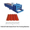 A. Simple structure and beautiful outlook; B. Easy to setting and operation C. Little noise and high working efficiency. D. High Strength and high production1. Profile 1.1 Feeding width: 1000mm1.2 Effective width: 828mm1.3 Material thickness: 0.5-0.8mm 2. Process flow Decoiling--feeding---forming---cutting---production 3.Manual Decoiler 3.1 Material coil inner diameter: 450mm-700mm3.2 Max coil width: 1200mm3.3 Carrying capacity: 5T 4.Forming Device 4.1 Number of forming steps:16 steps4.2 Shaft material: 45# steel with harden treatment, outer diameter 75mm4.3 Roller material: 45# steel4.4 Main motor power: 5.5kw4.5 Forming speed: 8-10m/min4.6 Voltage:380V/50Hz/3 phrase 5.Cutting Device 5.1 hydraulic cutter5.2 blade, puncher and mold material: Cr12 steel with quenched treated 60-62C5.3 cutting system: advanced hydraulic drive, automatic cutting after forming, no distorting or wasting, high level safety factor. 6.Controlling Device 6.1 screen: 5.7 inch Taida screen from Taiwan6.2 PLC: Taida DVP14ES from Taiwan6.3 coder: Japanese Omron E6C2 7. Hydraulic 7.1 Advanced hydraulic system from Taiwan7.2 Power: 4kw 8.Simple output frame simple frame weld bu #8 U bar, 1 pcs of 3m 9.Payment and terms Payment: 30% T/T in advance and balance 70% after inspection confirmation before shipment. . 10.Warranty One year, and we will provide the technical support for the whole life. 11. Packing Container packing of the line suitable for overseas shippingThe subject can be loaded in one 40’ GP container.Packing style: Naked and covered by plastic film, spare parts and some small parts packed in wooden box. 12.Assemble, train the machine It is free to assemble and train the machine, but the buyer must pay for the round-trip airplane ticket, and arrange accommodation during that time 13. Maintain It is free to maintain the machine the first year after you buying, include changing the main components. The first year hence, you will pay for our technician $50/day to maintain the machine. And its component is not free, if you need to get it from us. (The buyer should supply airplane ticket and accommodation, if he need maintain).