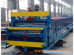 Double Deck Roll Forming MachineBotou Xinnuo molding machine limited company is a supplier of roof plate roll forming achine,sandwich plate roll forming machine,floor plate roll forming machine, bending machine, shearing machine, cutting machine,double roll forming machine,C type steel,Z steel,light steel keel machine and so on,is a large scale technology quality manufacturers.Our company's double deck roll forming machine,double layer roll forming machine into a 40′Container. This double deck roll forming machine,double layer roll forming machine was designed and built to produce both Corrugated sheets and Trapezoidal sheets on the same machine without changing any rollers or spacers. Under PLC computer control system, this double deck roll forming machine,double layer roll forming machine works fully automatically including roll forming and cutting. http://www.xinnuochina.com/double/